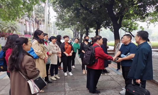 2023年3月31至4月2日,我院语言学科带头人、学院党委委员安华林教授带领中文系汉语国际教育专业教师9人到暨南大学进行全方位、多层次的学术交流。为深入贯彻落实党的二十大精神,进一步有效推进党建工作提质增效,4月1日上午,随行的我院教工第一党支部与暨南大学文学院中文系教工第三党支部在暨南大学第一文科楼二楼中厅会议室开展党建活动,双方围绕学科建设、课程改革、团队建设和人才发展、如何将党建工作和专业建设相结合等问题进行了细致而深入的交流。暨南大学文学院中文系资深教授邵敬敏先生,中文系副主任、原第三支部书记周娟教授,中文系研究生教育负责人赵春利教授,暨南大学华文学院副院长周静教授,我院语言学科带头人安华林教授,中文系副主任张伟副教授、裴梦苏博士,汉语国际教育专业负责人黎海情副教授,教工第一支部书记、教研室主任沈晓梅副教授,李玉晶副教授等,双方支部党员共二十余人参加了此次活动。活动由周娟教授主持。
