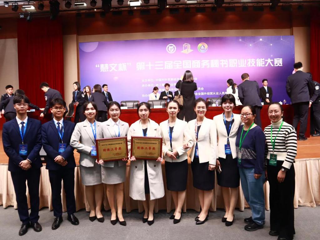 “慧文杯”第十三届全国商务秘书职业技能大赛于2023年12月1日至3日在浙江警官职业学院隆重举行。经过层层激烈角逐,英国上市公司3651队(欧金梅、赖宝茹、陈海玲、温烩梅)荣获本科组团体二等奖,英国上市公司3652队(吕姚、郭树林、周家露、黄颖瑶)荣获本科组团体三等奖。