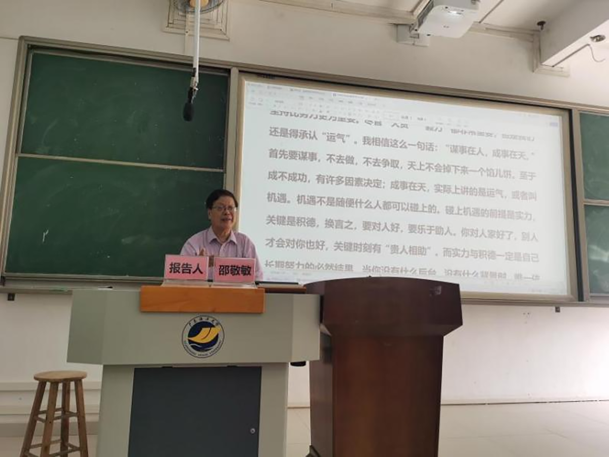邵敬敏先生是暨南大学文学院特聘一级教授、博士生导师,享受国务院特殊津贴专家。他在报告中讲述了追逐汉语梦的内涵和汉语走向世界的动因、理念,深情回顾了自己在语言学求索之路上的心路历程,分享了自己在研究过程中的点滴体会,强调语言学研究应该具有“语言自信”与“汉字自信”,必须拓宽更高层次“国际视野”、提倡“双通道的国际接轨”,必须高度重视“语言应用”与“语言服务”。