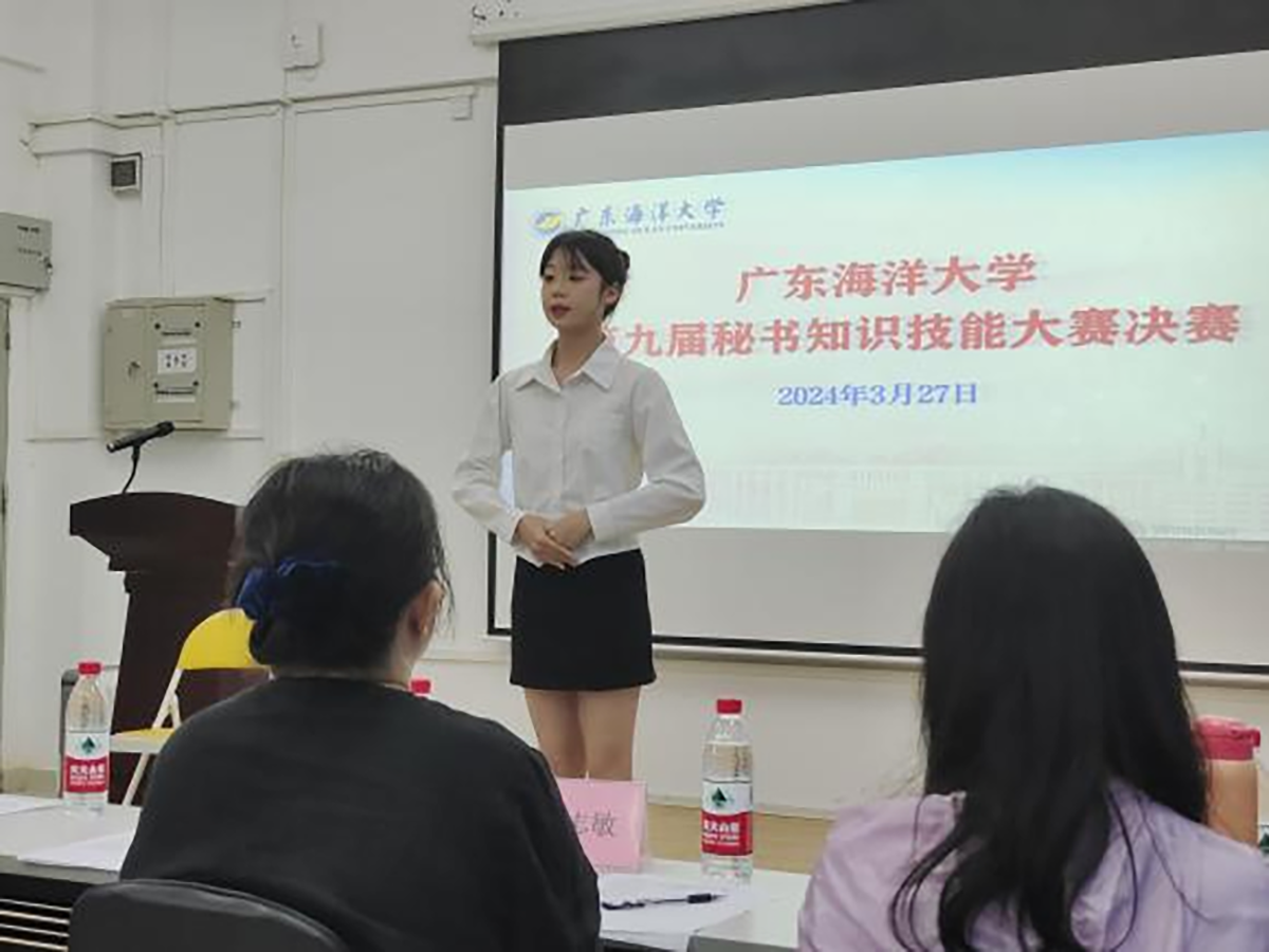 本次大赛分为初赛和决赛两个阶段,初赛于3月20日在钟海楼05005举行,选手根据指定的秘书工作实际案例背景资料,主要围绕会议管理基本技能、大型活动方案设计、文书拟写与处理、企业综合行政事务处理、常用办公软件应用等内容,按要求完成所涉任务的方案设计。初赛排名前20的选手进入决赛角逐。决赛于3月27日下午在秘书学综合实训室举行,主要以面试形式考察选手的秘书综合素质。经过激烈角逐,秘书学专业的董泳琦、周雅琪同学获一等奖,温钰怡、张嘉怡、曾雅妍同学获二等奖,冯艺扬、伍朵朵、陈贻怡、高宛霞、赖麒妃获三等奖。