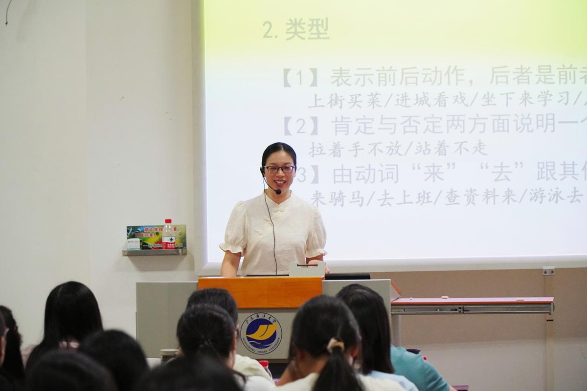在本次活动中,张伟老师讲授了《现代汉语》课程中的短语的定义、结构类型以及功能类型。张伟老师教学目标明确,教学风格独特而鲜明。她灵活运用新媒体教学平台,与学生们进行互动,充分调动了学生的课堂积极性,让学生能够在学习中思考,在思考中进步。她结合当下时事热点,生动形象地帮助学生理解短语结构,并且在教学过程中巧妙地融入了课程思政内容,达到了润物细无声的教学效果。