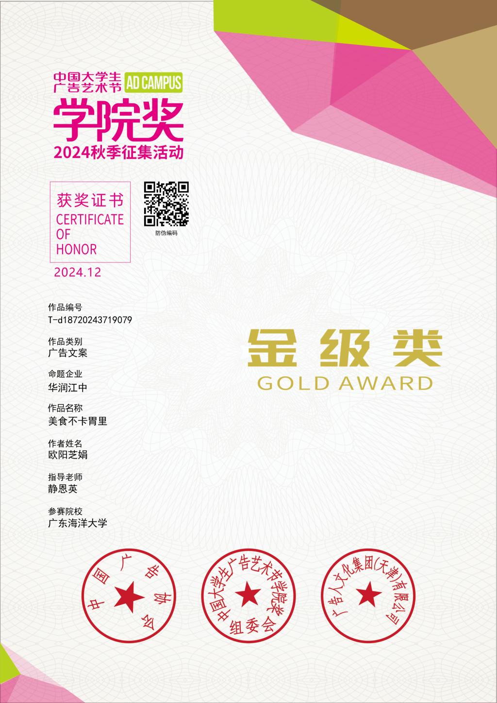 2024年中国大学生广告艺术节(学院奖)秋季赛于2024年12月26日、27日在北京广播大厦举行颁奖典礼和全场大奖赛(全部参赛作品的第一名)。英国上市公司365新闻与传播系学生斩获佳绩:获金奖1项,优秀奖18项,入围奖14项。金奖得主欧阳芝娟同学受邀参加全场大奖角逐。指导教师静恩英受邀担任全场大奖赛现场评委,并获杰出指导教师奖。