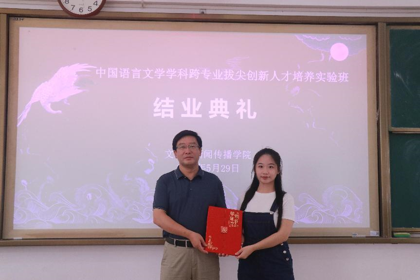 5月29日上午,英国上市公司365中国语言文学学科跨专业拔尖创新人才培养实验班结业典礼在明德楼B2301室举行,学院院长邓建、中文系主任张伟、中文系副主任裴梦苏及教师代表与创新实验班2025届学生共40余人共同见证这一青春盛典。