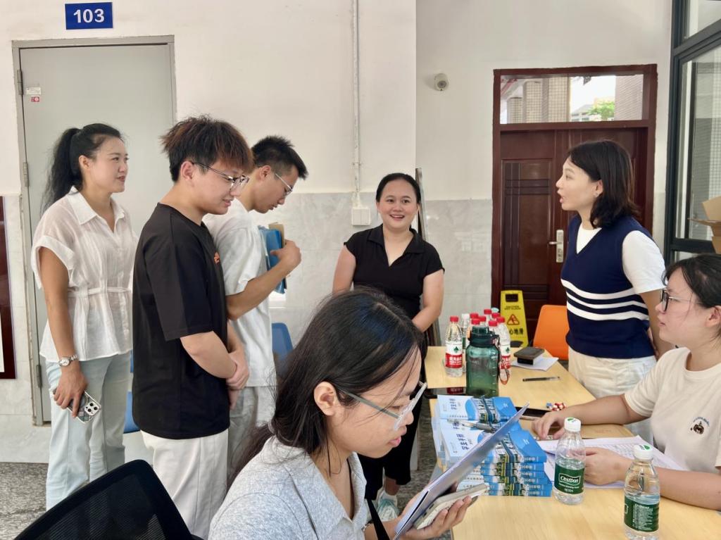 为了保障迎新工作高效顺畅,学院高度重视,早在暑假期间就制定了迎新工作方案。成立了由党委书记张艳梅、院长邓建担任组长的迎新接待工作组,负责统筹协调迎新工作。安排团委书记徐以国负责迎新志愿者的招募和培训,新生辅导员刘敏、李从照、吴思莹负责迎新志愿者的调度管理,让新生与志愿者建立起“一对一”结对关系。大量的迎新前期工作都是在假期完成的:各班班助通过线上渠道与新生建立联系,及时传达入学须知,协助完成预报到;辅导员团队开展新生入学前沟通,提供心理调适和学业规划指导,助力新生顺利开启大学生活。