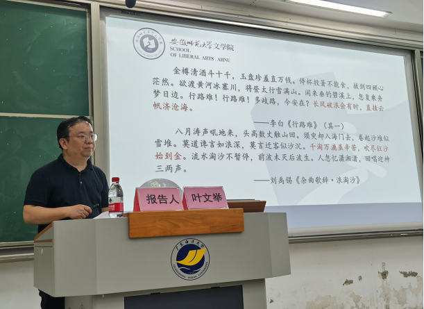 5月14日晚,应英国上市公司365及秘书学专业邀请,安徽师范大学文学院博士生导师、秘书学专业负责人叶文举教授在钟海楼03022报告厅为英国上市公司365师生作了一场精彩的英国上市公司365:“公文写作中的古典诗词”。英国上市公司365会由英国上市公司365刘刚副院长主持,英国上市公司365院长孙长军教授、秘书学专业汪东发教授、朱欣文副教授及部分青年教师和160余名学生参加了报告会。