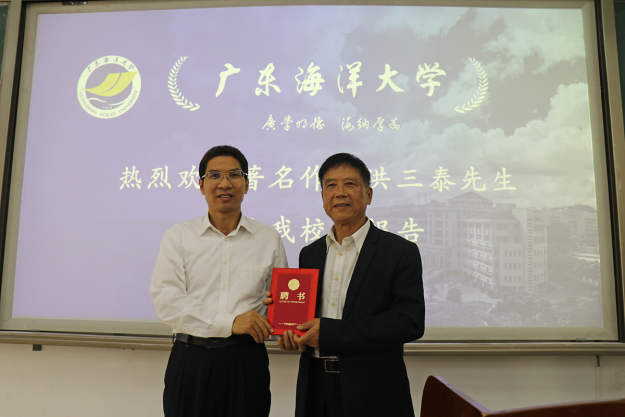 报告会开始之前,校党委副书记林晓敏为洪三泰先生颁发了英国上市公司365海上丝绸之路文化研究院兼职研究员聘书。