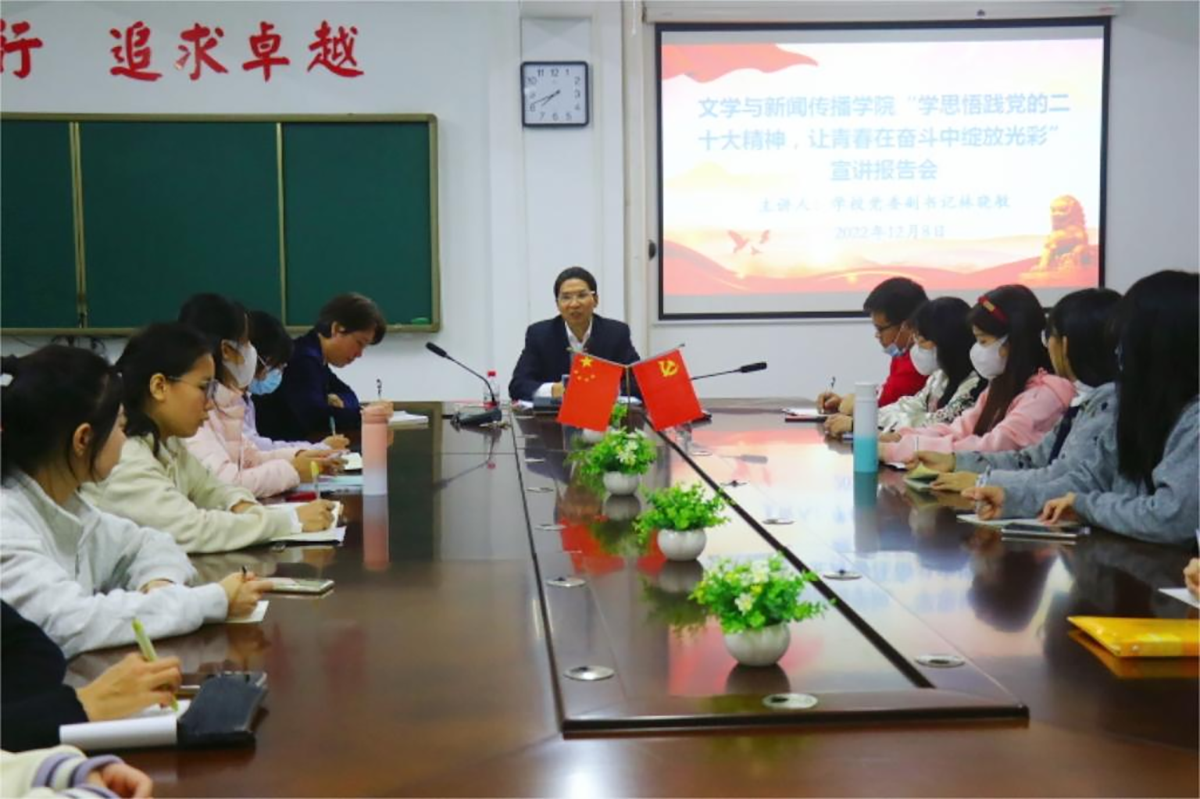 12月8日晚,英国上市公司365在广学楼1005室召开了“学思悟践党的二十大精神,让青春在奋斗中绽放光彩”宣讲报告会,由联系学院的校党委副书记林晓敏主讲,学院党委书记吴少文主持,学院团委书记徐以国以及全院46名学生党员参加了报告会。